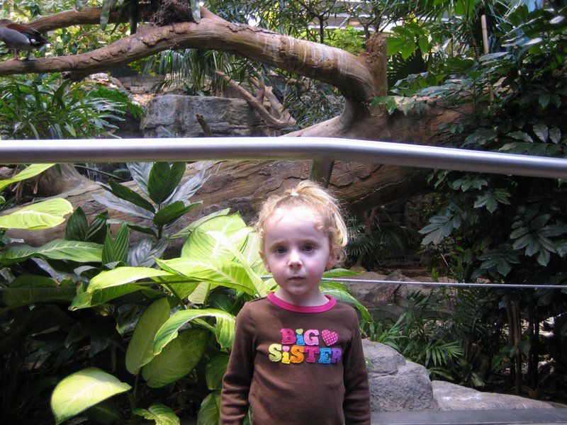 Looking at potential options for the day on how to keep Mira busy, it occurred to me that we haven’t been at the Zoo in a while. The Cleveland Zoo is amazing and Mira just loves going there. They also have a completely enclosed rain forest building. It’s huge, the temperature is a balmy 75 degrees and it’s filled with all kinds of animals: Crocodiles, Monkeys (Curious George), birds, turtles, bats and of course kids all over the place. She ran around for a few hours and had a great time.
