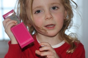 A few weeks after Heidi left. Mira found this little red sliding mirror that she plays with. She opened it up and said, “Hello? Is this Miss Heidi? Oh, hi Miss Heidi. How are you?” Yes, she proceeded to have a nice long conversation with Miss Heidi.