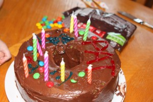 I had another birthday, my 39th. It was celebrated with little fanfare. Just a nice green cake with chocolate frosting and lots of candy on top. Yes, Mira demanded that this would be my favorite. I must say that it was delicious. Go figure.