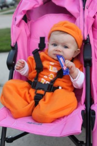 We decided to recycle the Peanut costume that Mira wore for her first Halloween, you’d be surprised to know that it actually fit like a glove. You gotta love the circus peanut!