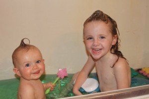 Back home we got a bath and we had to snap this picture of the girls together. They were having so much fun and Luna is getting so big!
