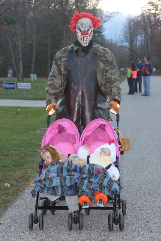 Of course this was in Muskegon and we went with Erika’s friend Jamie and her husband Lee. Yes, Lee had one of the freakiest costumes every. It was great watching him push around the two babies in a pink stroller. Classic!