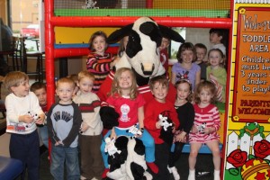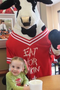 We don’t spend a ton of time there, but Erika and I were curious as to what a Birthday party would look like in a fast food chicken restaurant. What I didn’t realize is that they have an indoor play area and a giant cow that runs around and messes with the kids. Seriously, I have evidence…