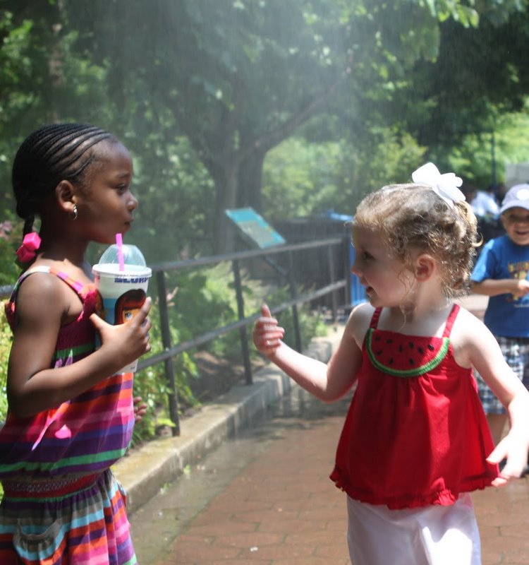 Once in the Zoo, Mira grabbed a few kids and heading straight to the mist machine. Running and getting wet. That’s what it’s about to a four year old. We could have probably save ourselves 4+ hours of travel if we just would have turned on the hose at Lori and George’s house.