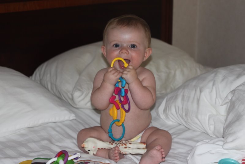 Once in Seattle, we were staying in a lovely Holiday Inn just south of town. What do you do in a hotel with kids? That’s pretty easy really, just give the baby some toys and leave her on the bed in diapers. No, she’s not crawling yet. It’s great, you put her in a spot and when you get back, she’s still there. And with Luna, she’s still happy too!