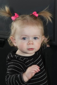 She’s a running machine these days and her hair has grown so much that we now have to put a pony in all the time. Otherwise she get a bit ornery and has to keep moving the hair out of her eyes. Here’s a double pony for you!