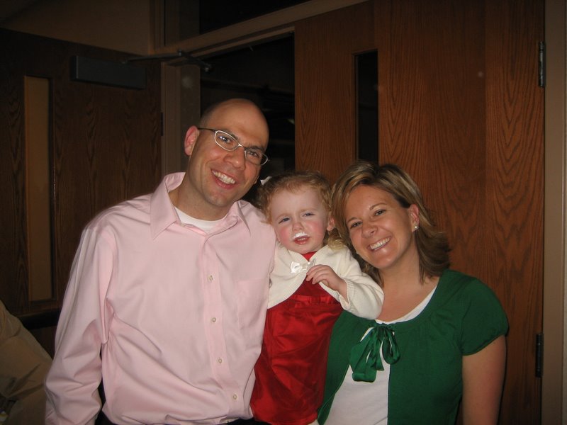 Mira was dressed with her holiday dress and sweater shortly after that and we were off to the pagent. Mira seemed a bit concerned when she arrived at the local rec center, but she warmed up once she saw Heidi. We left her in Heidi’s capable hands and headed off to take a seat with the rest of the parents. It was a pretty big room and there were a ton of kids running around.